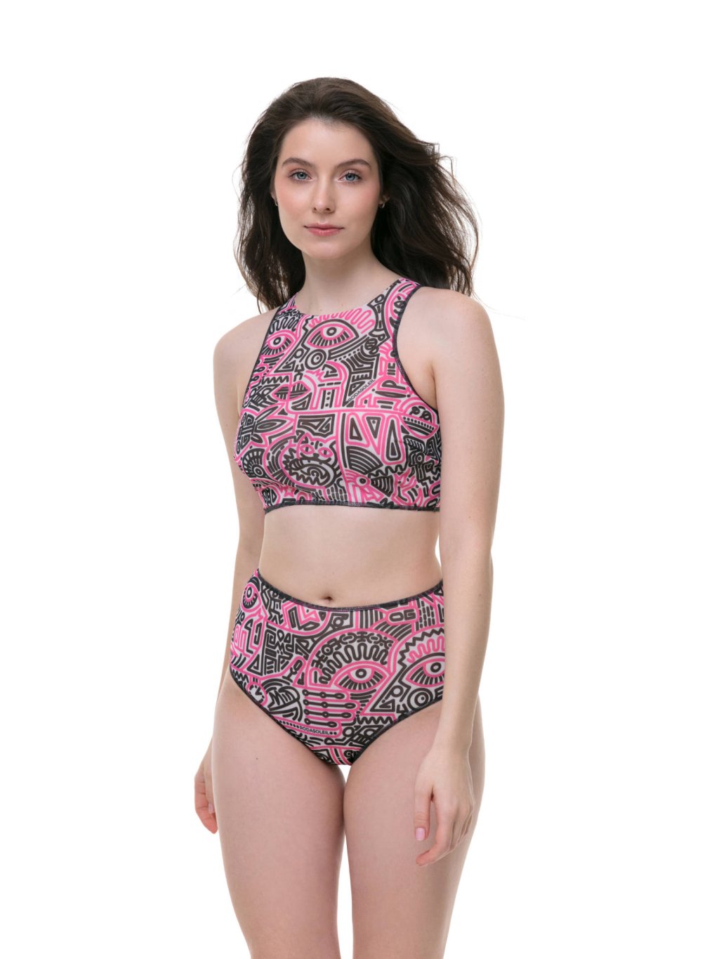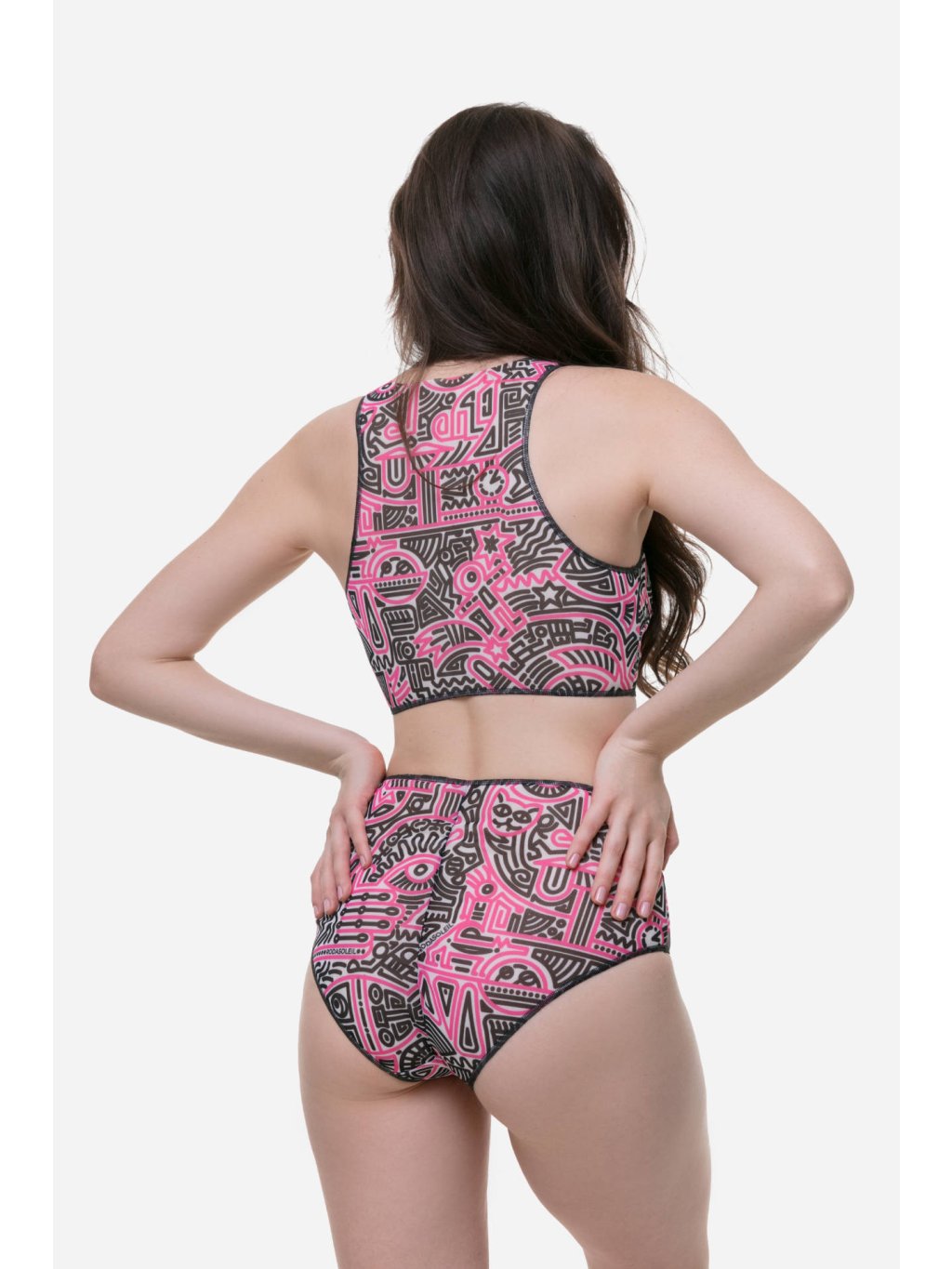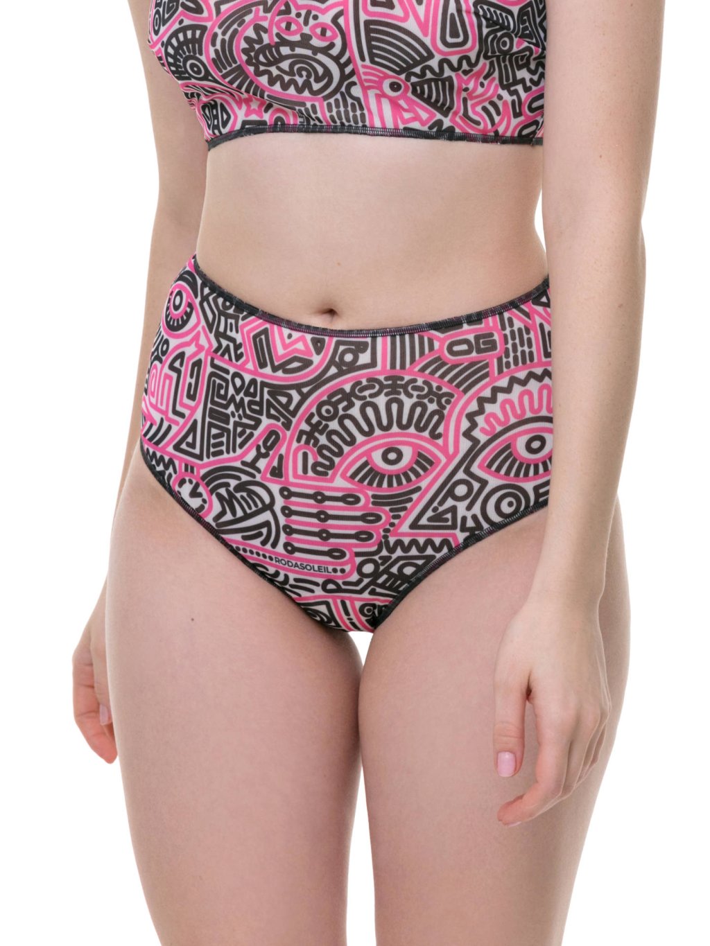 Chytré bikiny s vysokým pasem (spodní díl) "Doodling (fucsia)"