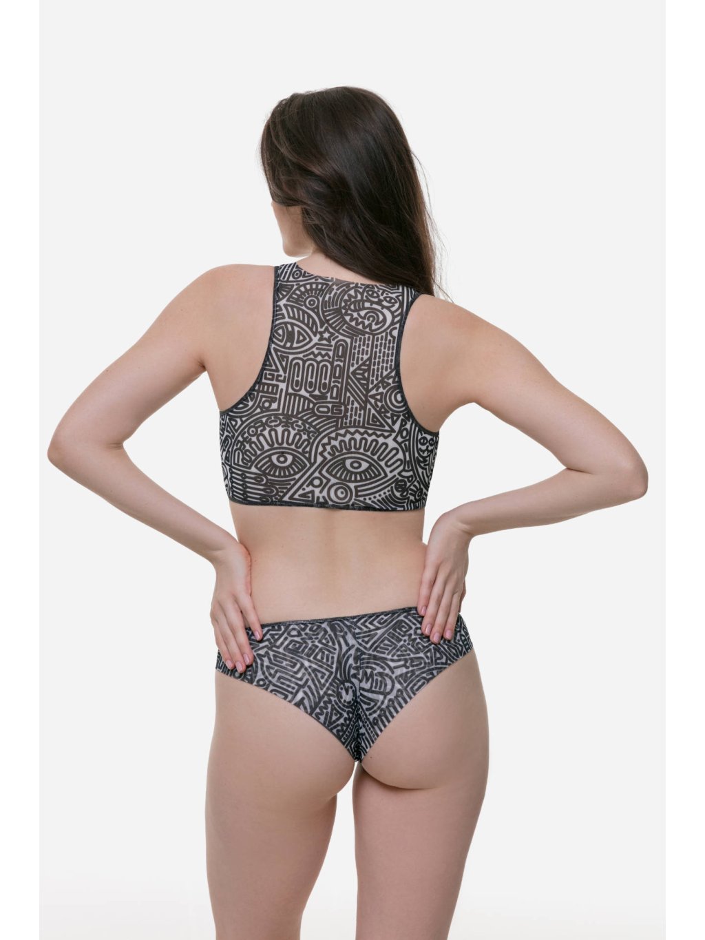 Chytré bikiny sportovní top "Doodling (black)"