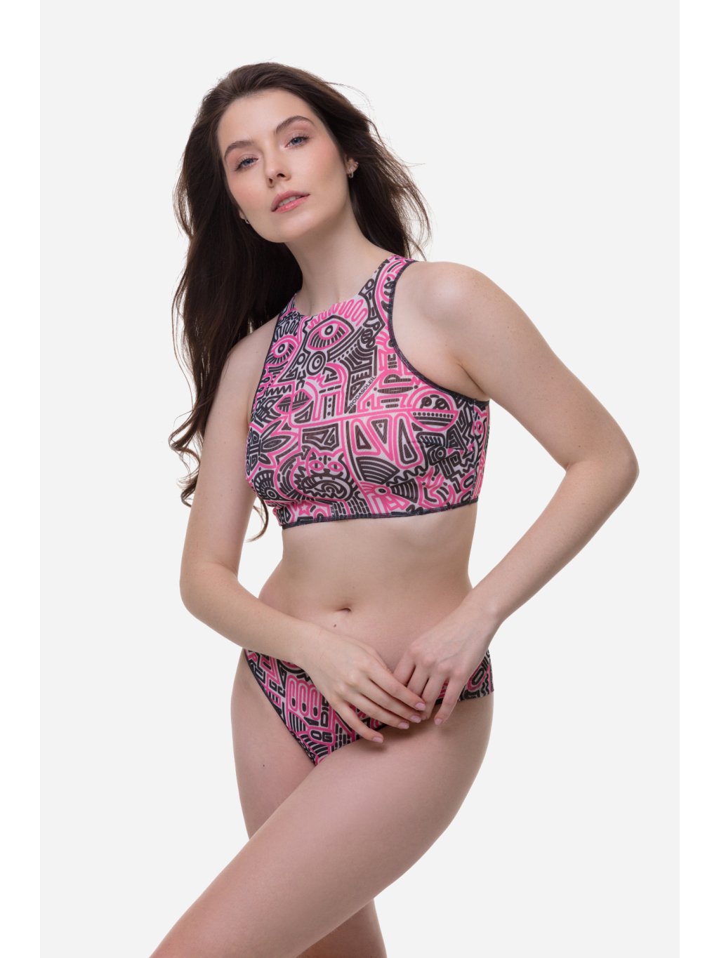 Chytré bikiny sportovní top "Doodling (fucsia)"